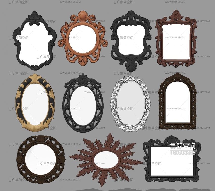 欧式法式雕花装饰镜 su草图模型下载 [模型ID:95306]