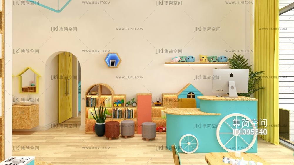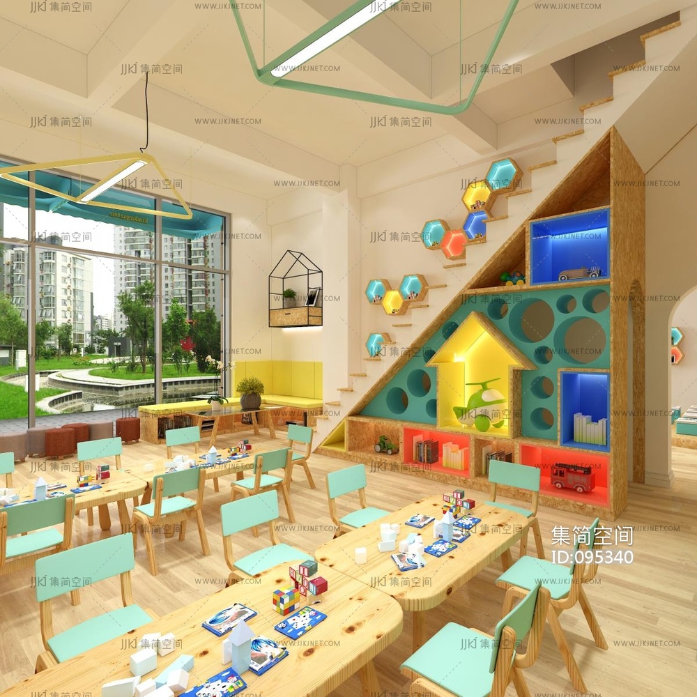 现代幼儿园,幼儿园活动室教师儿童区3d模型下载
