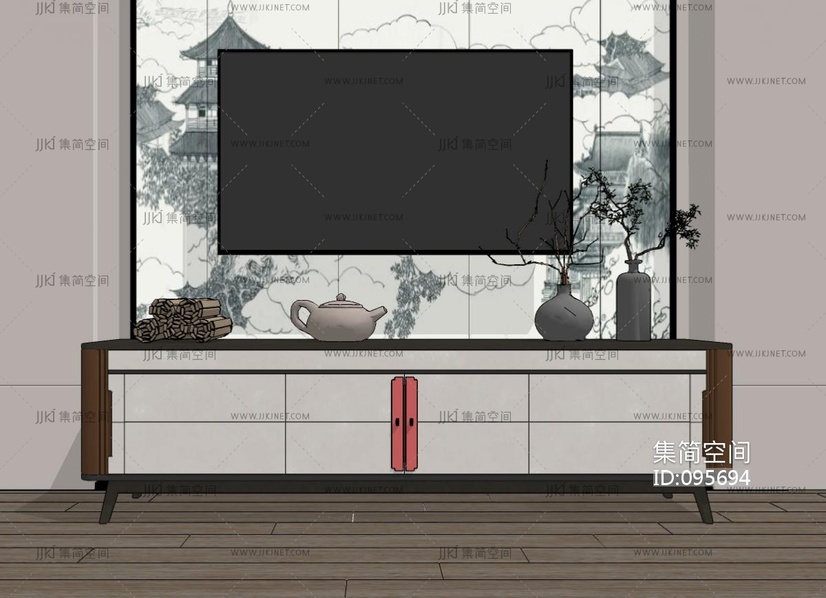 新中式轻奢电视柜 su草图模型下载 [模型ID:95694]