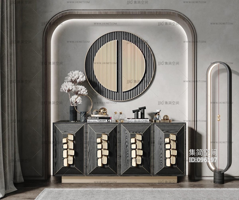 02北欧现代新古典边柜玄关柜花瓶摆件 3d模型下载 [模型ID:96197]