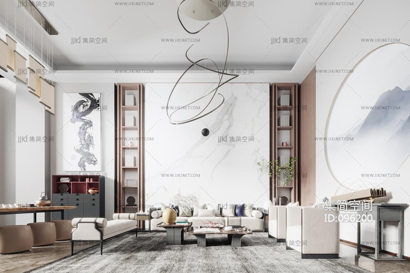 05新中式客厅,沙发长条凳, 3d模型下载 [模型ID:96200]