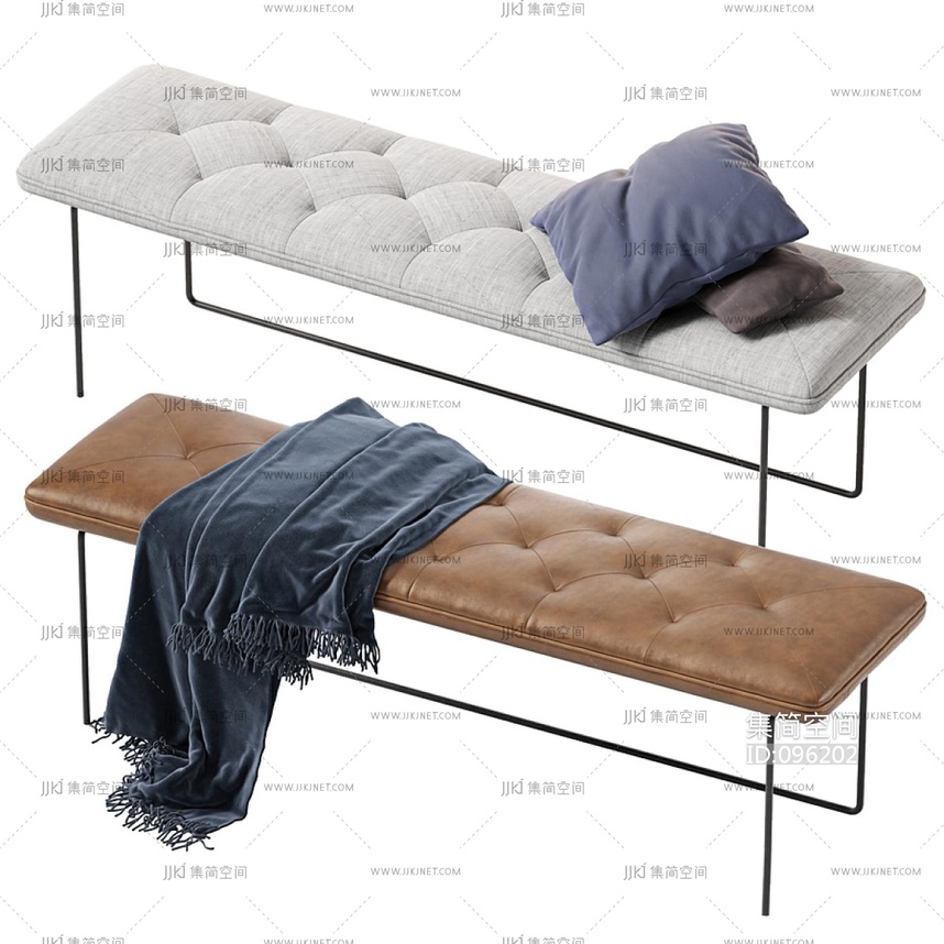 08贝拉长凳现代欧式皮革长凳,换鞋凳子,床尾凳 3d模型下载 [模型ID:96202]