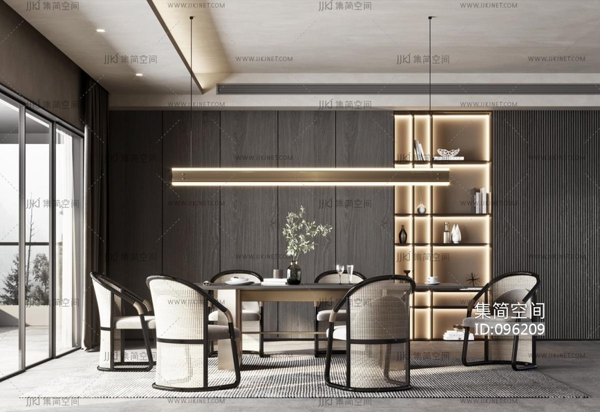 11现代轻奢餐厅,藤编编织餐桌椅椅子 3d模型下载 [模型ID:96209]