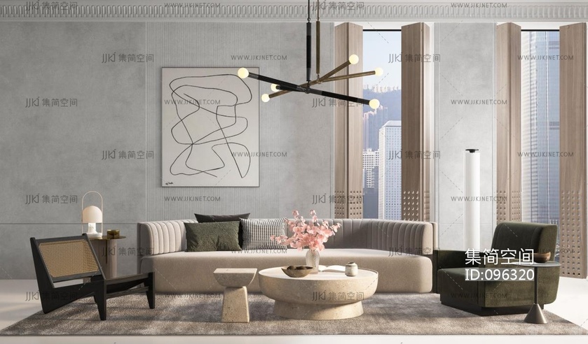 03-奶油中古沙发组合_沙发茶几组合_异形沙发_金属茶几_单人休闲椅_模块沙发3D模型3d模型下载