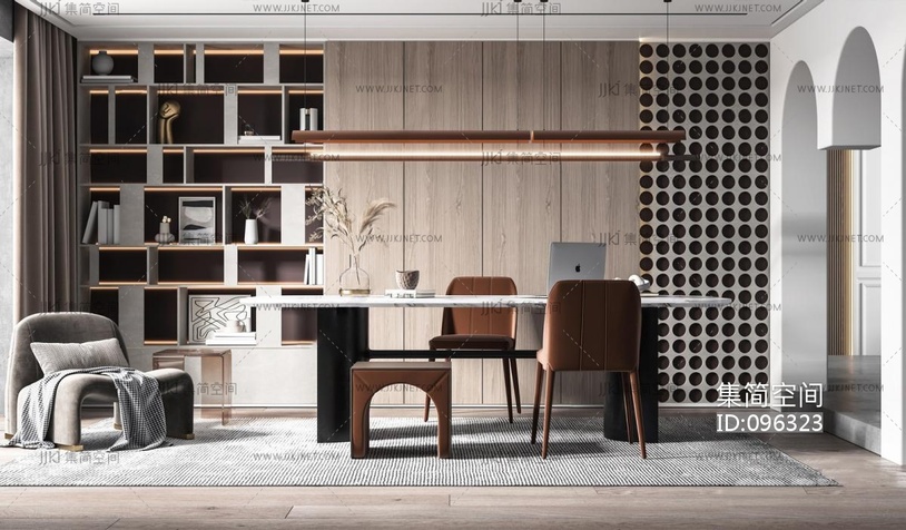07现代书房,书桌椅 3d模型下载 [模型ID:96323]