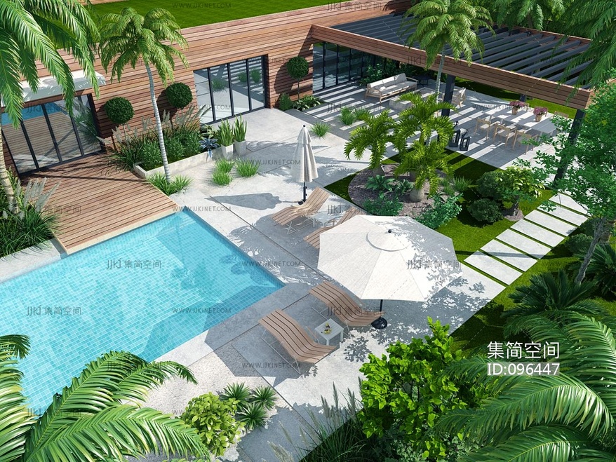 现代景观庭院花园泳池鸟瞰 3d模型下载 [模型ID:96447]