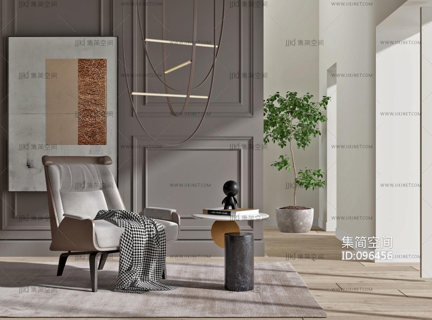 现代布艺休闲椅,圆形边几 3d模型下载 [模型ID:96456]