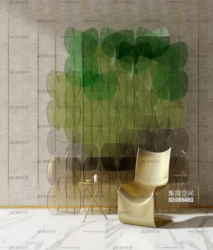 现代休闲椅边几玻璃屏风 3d模型下载 [模型ID:96461]