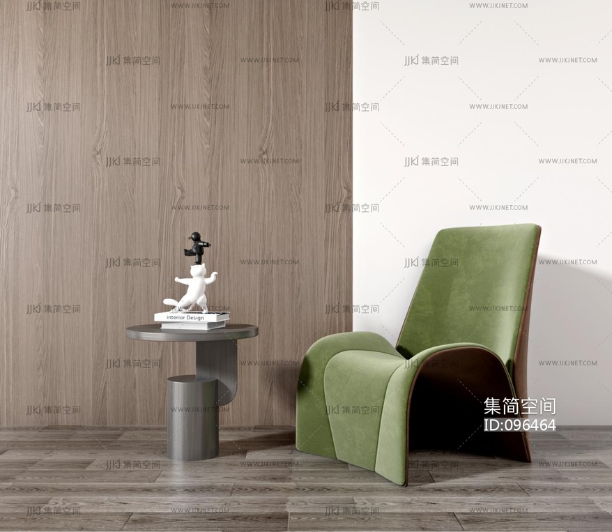 现代绒布休闲椅,角几 3d模型下载 [模型ID:96464]