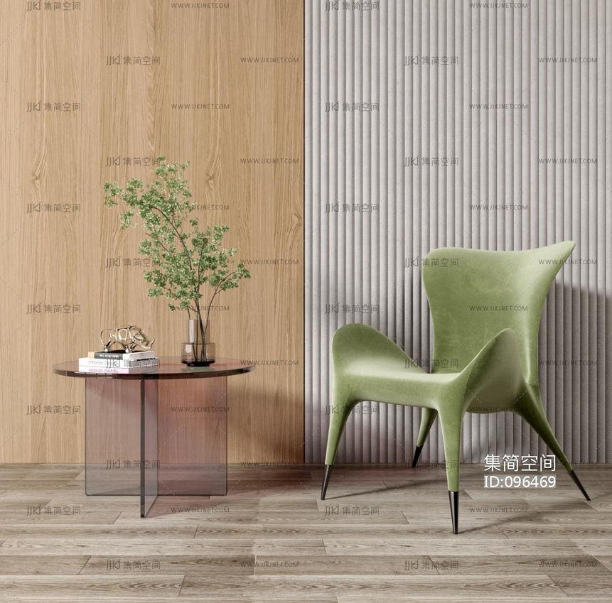 现代绒布休闲椅边几,花瓶摆件 3d模型下载 [模型ID:96469]