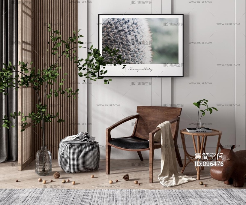 北欧原木休闲椅,边几 3d模型下载 [模型ID:96476]