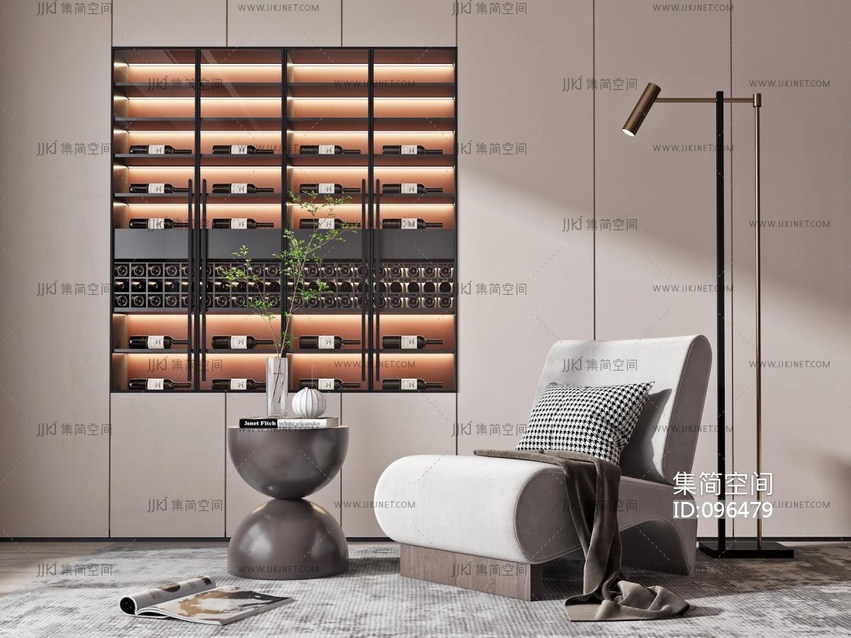 01-现代法式单人沙发_休闲椅_单椅_扶手椅圆形边几书本书籍玻璃水杯3D模型3d模型下载