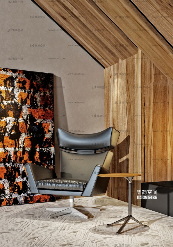 现代皮革休闲椅边几 3d模型下载 [模型ID:96486]