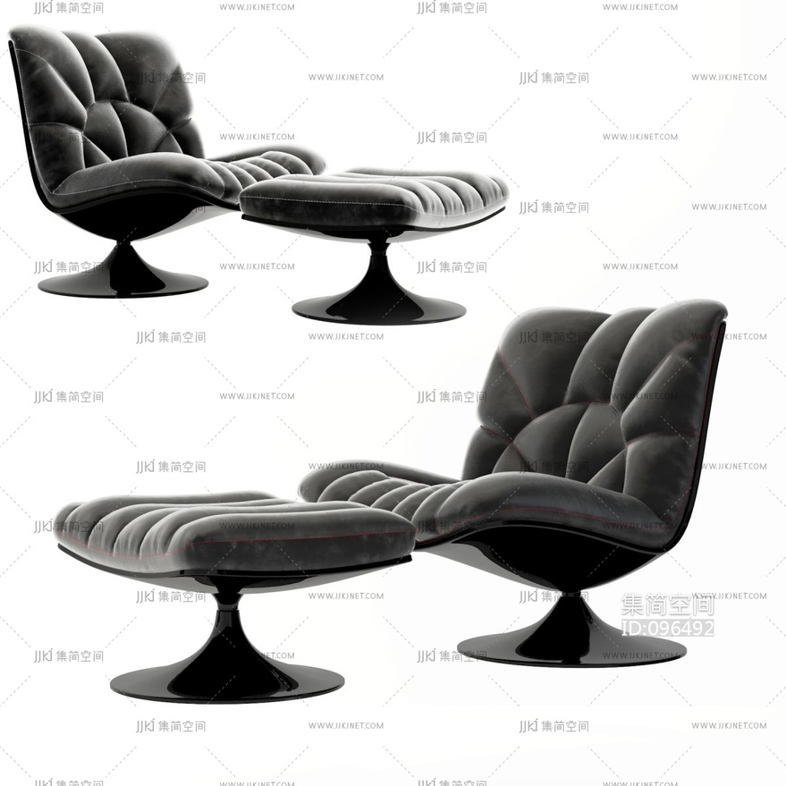 现代皮革休闲椅,脚凳 3d模型下载 [模型ID:96492]