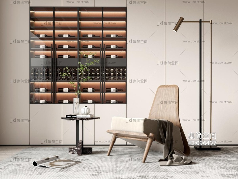 01-现代法式单人沙发_休闲椅_单椅_扶手椅圆形边几书本书籍玻璃水杯3D模型3d模型下载