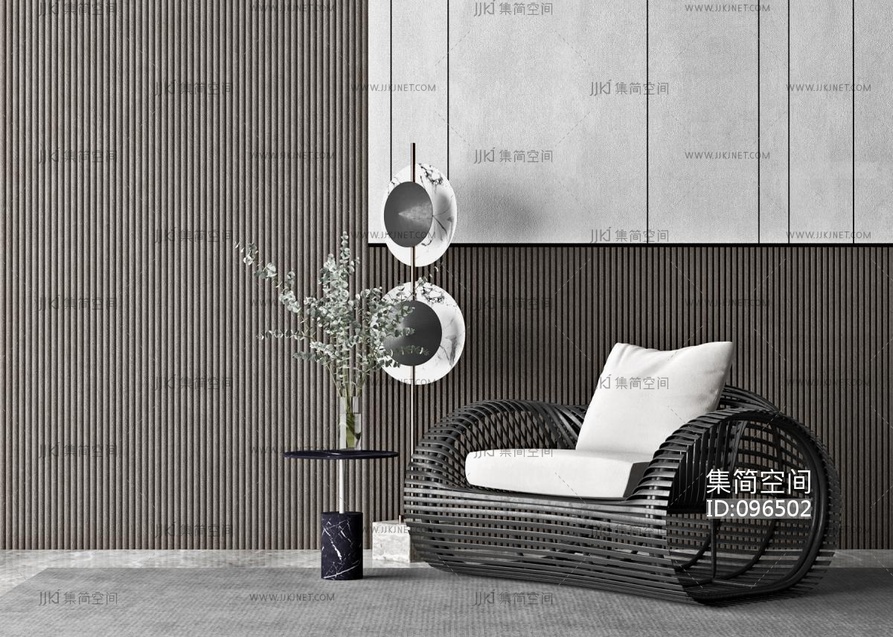 现代藤编休闲椅,边几 3d模型下载 [模型ID:96502]