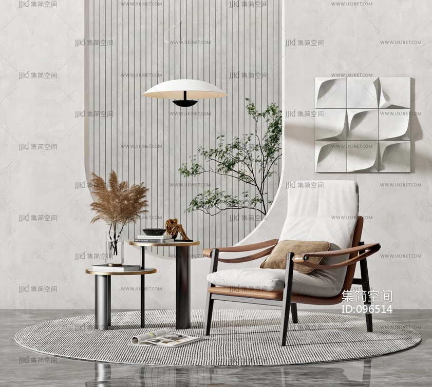 01-现代法式单人沙发_休闲椅_单椅_扶手椅圆形边几书本书籍玻璃水杯3D模型3d模型下载
