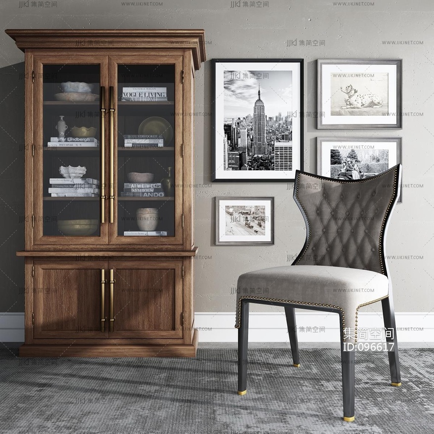 美式绒布单椅,储物柜 3d模型下载 [模型ID:96617]