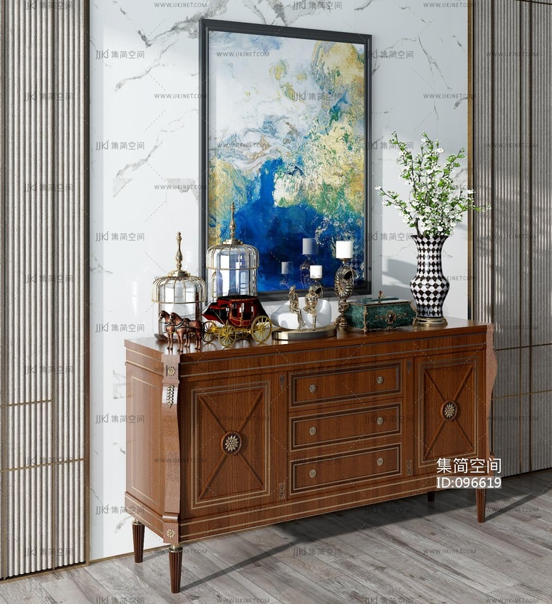 美式玄关柜摆台装饰画3D模型下载3d模型下载