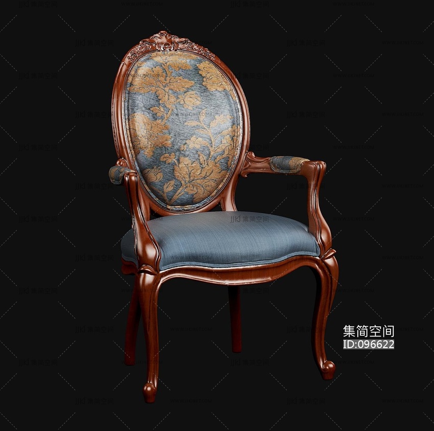 欧式实木单椅 3d模型下载 [模型ID:96622]