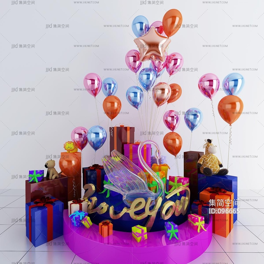 现代节日礼物气球美陈 3d模型下载 [模型ID:96665]