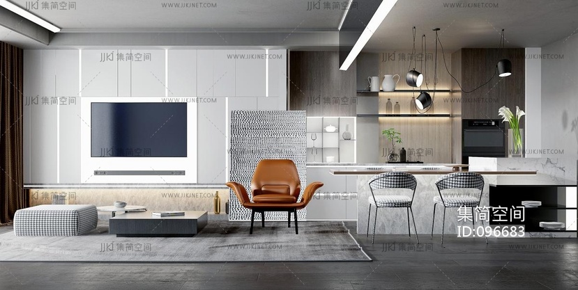 现代电视背景墙 3d模型下载 [模型ID:96683]