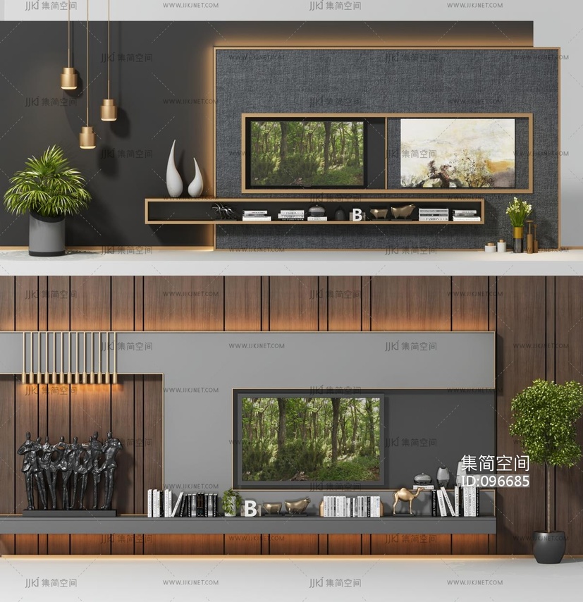 现代电视柜背景墙 3d模型下载 [模型ID:96685]