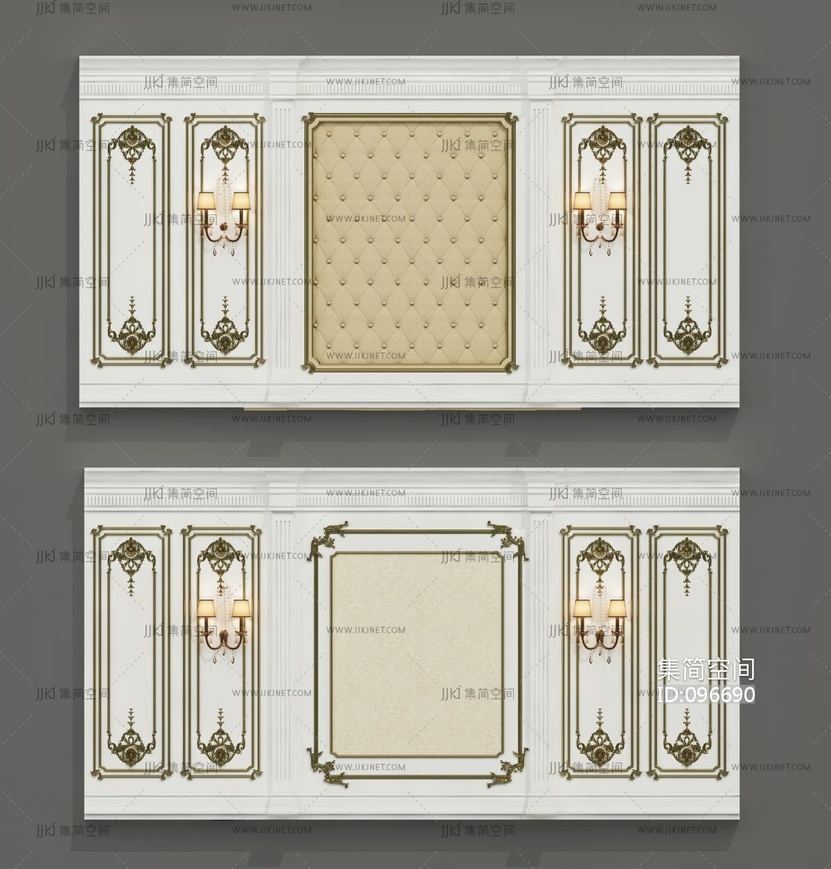 法式古典雕花护墙板墙面水晶壁灯欧式皮革软包墙面3d模型3d模型下载