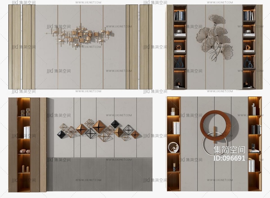 新中式银杏叶背景墙 3d模型下载 [模型ID:96691]
