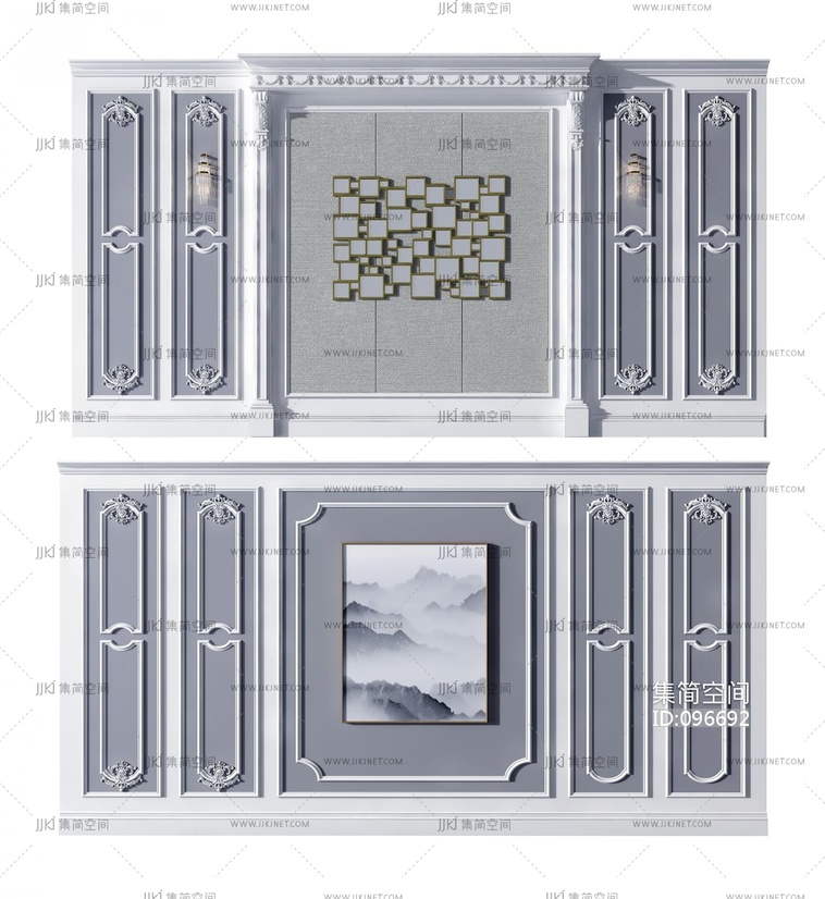 简欧护墙板背景墙 3d模型下载 [模型ID:96692]