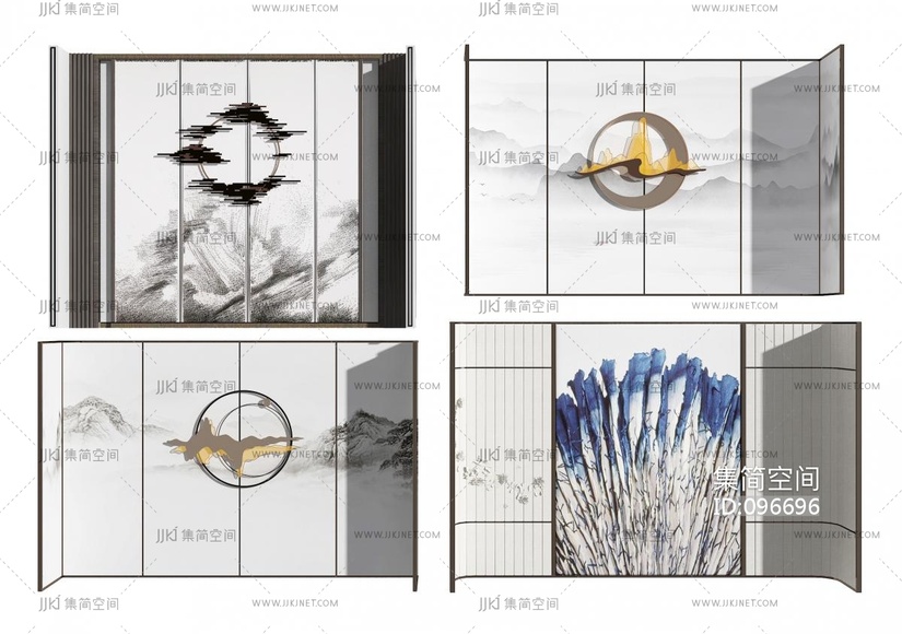 新中式山水背景墙 3d模型下载 [模型ID:96696]