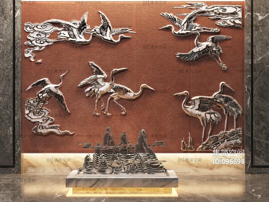 新中式仙鹤背景墙 3d模型下载 [模型ID:96698]