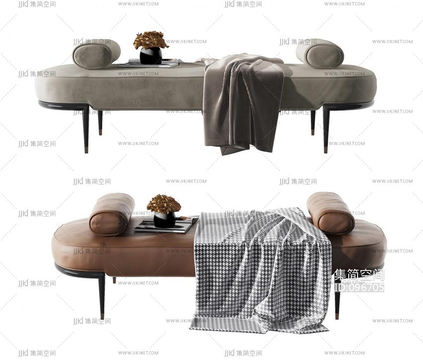 现代轻奢床尾凳,角几饰品摆件,3d模型下载