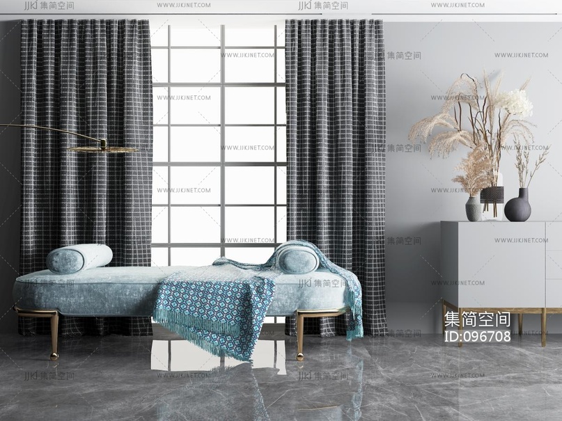 现代绒布床尾凳,装饰柜,饰品摆件 3d模型下载 [模型ID:96708]
