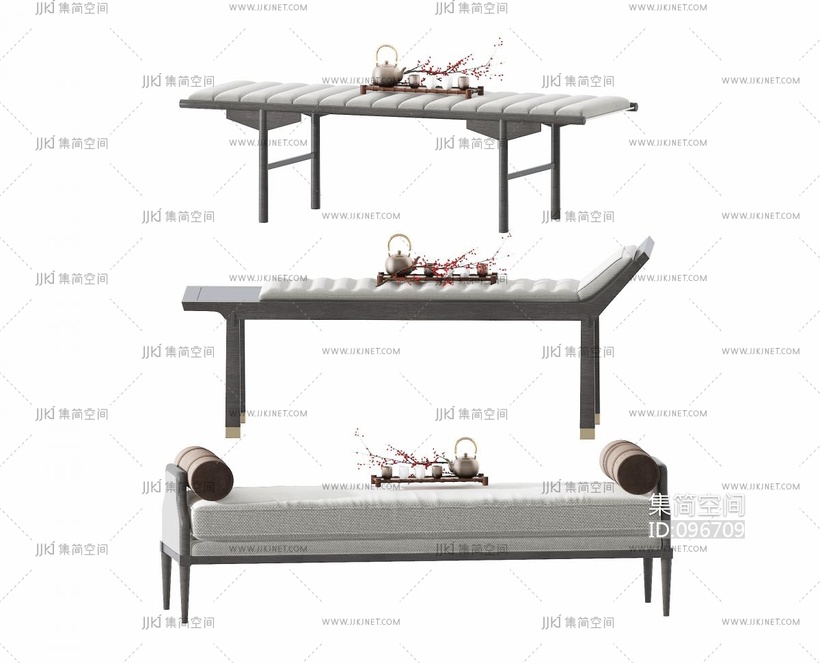新中式布艺床尾凳 3d模型下载 [模型ID:96709]
