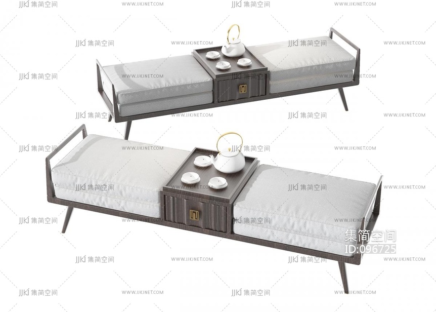 新中式布艺床尾凳脚踏,茶具 3d模型下载 [模型ID:96725]