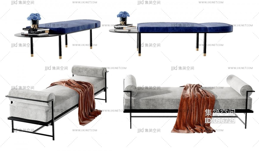 现代布艺床尾凳 3d模型下载 [模型ID:96729]