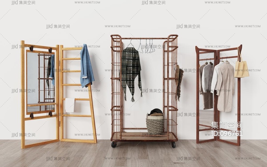 北欧实木衣帽架,试衣镜 3d模型下载 [模型ID:96761]