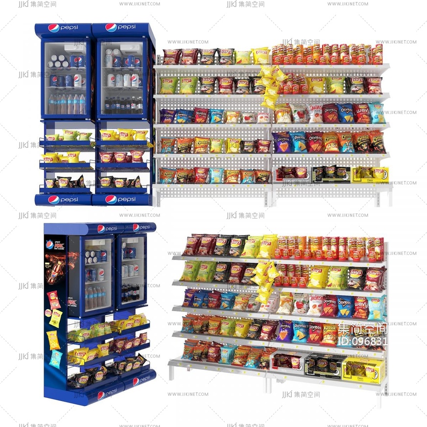 现代超市食品便利店货架,冰柜 3d模型下载 [模型ID:96831]