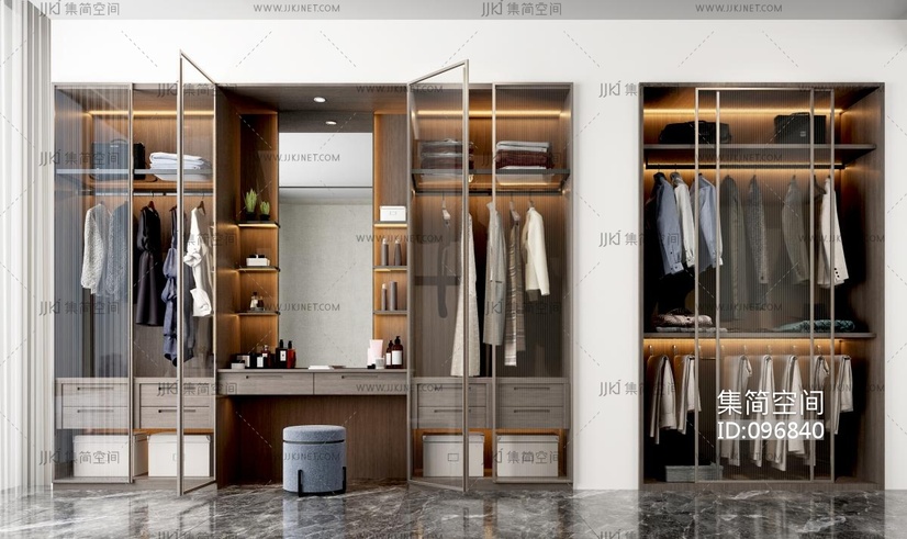 现代轻奢嵌入式衣柜衣橱 3d模型下载 [模型ID:96840]