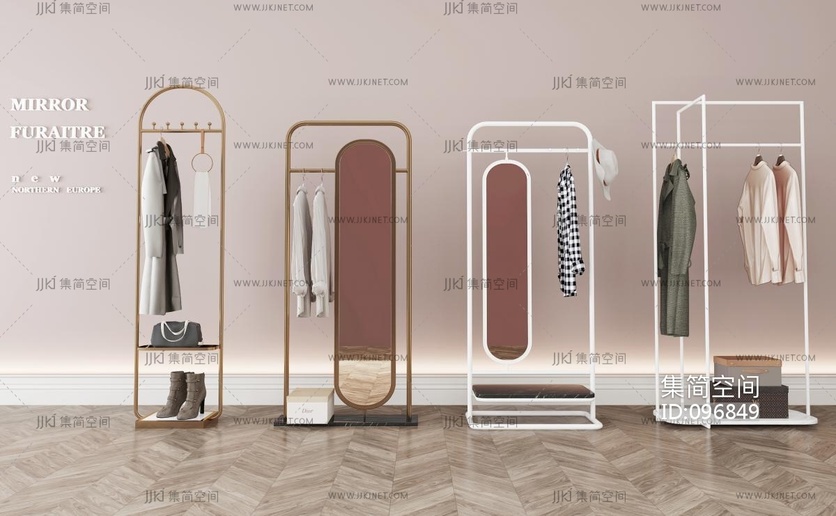 现代挂衣架穿衣镜, 3d模型下载 [模型ID:96849]