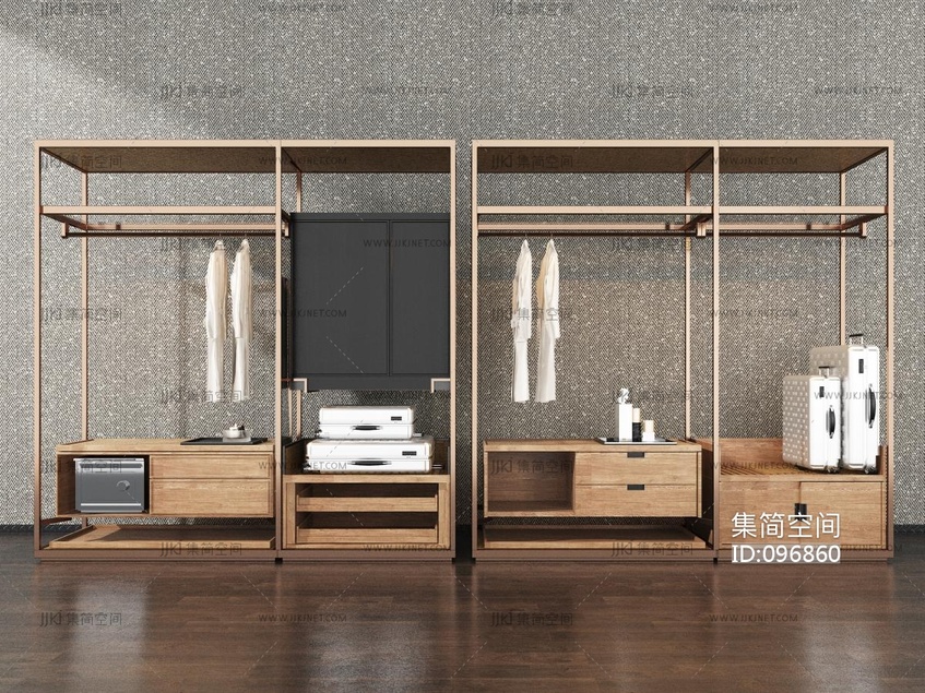 现代实木衣柜衣架 3d模型下载 [模型ID:96860]