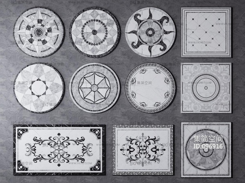 新中式欧式大理石地面拼花,瓷砖,3d模型下载
