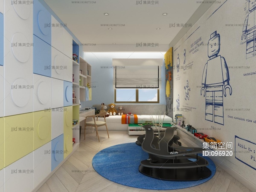07-现代儿童房,儿童床学习桌-3d模型下载
