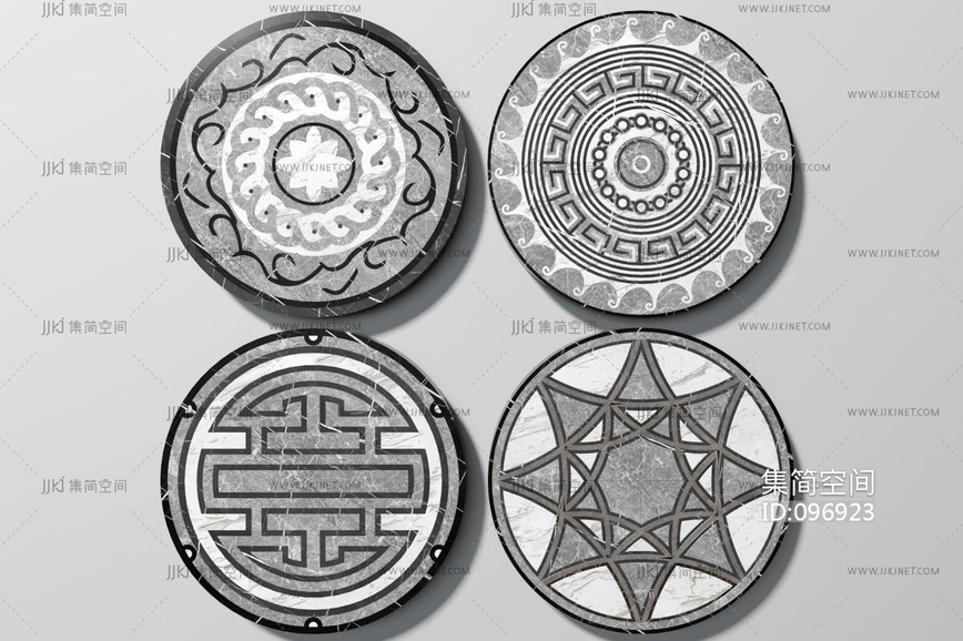 新中式圆形拼花瓷砖 3d模型下载 [模型ID:96923]