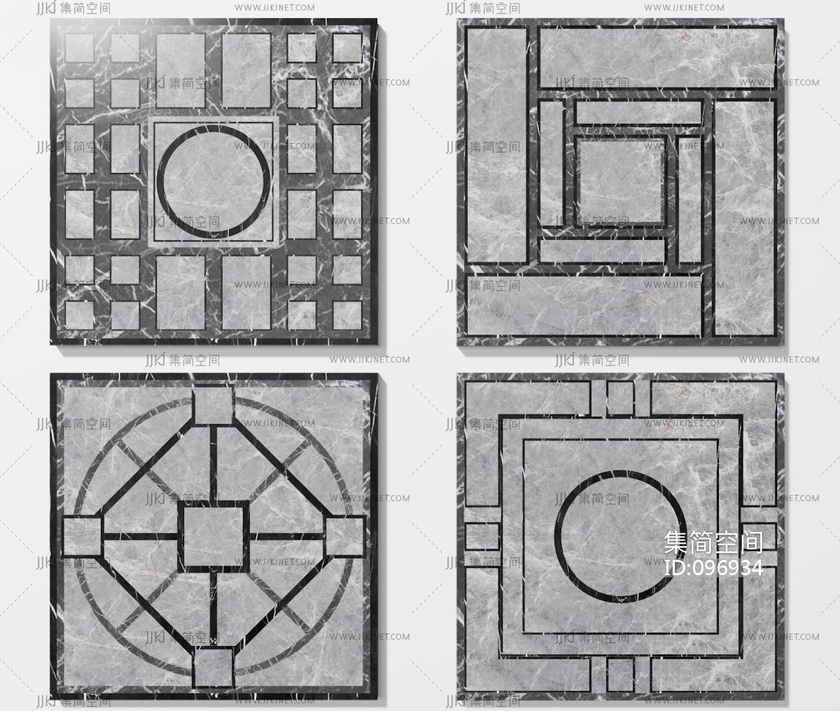 新中式大理石石材拼花,地面圈边, 3d模型下载 [模型ID:96934]