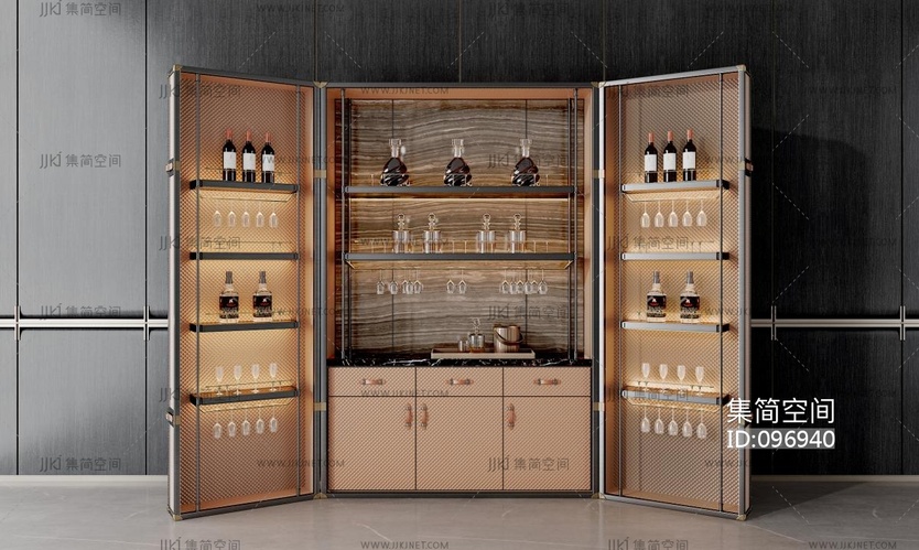 现代轻奢酒柜,红酒托盘 3d模型下载 [模型ID:96940]