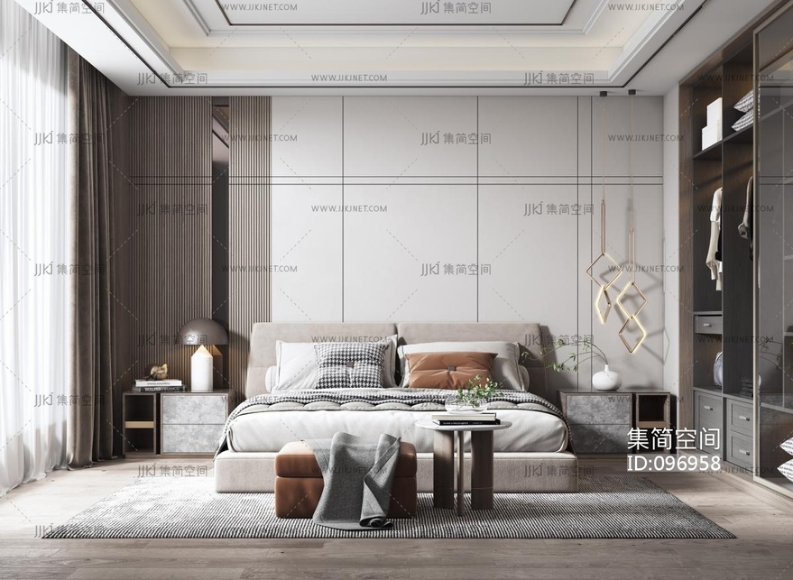 09现代卧室,双人床,床头柜,床尾踏,凳衣柜 3d模型下载 [模型ID:96958]