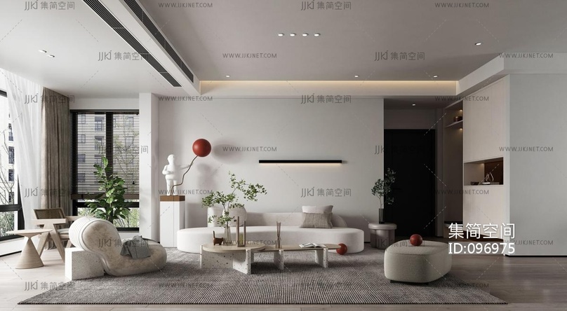 现代诧寂风客餐厅弧形异形沙发 3d模型下载 [模型ID:96975]