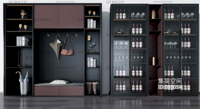 现代酒柜,鞋柜, 3d模型下载 [模型ID:97054]